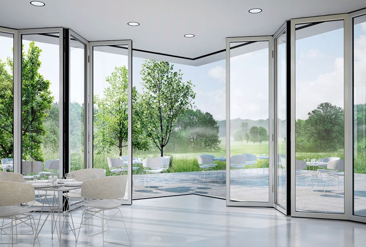 Sun Corporation’s thermal break slide and fold doors will transform your perception of doors by merging in seamlessly with the exterior and interior. Sun Corporation’s cutting-edge line of thermal break aluminum doors offers exceptional heat insulation since the door profile incorporates an additional layer of nylon polyamide.You can further improve the energy efficiency of the glass panes by choosing from double-glazed versions. Double-glazed panes improve heat insulation and help maintain a suitable temperature in the house.